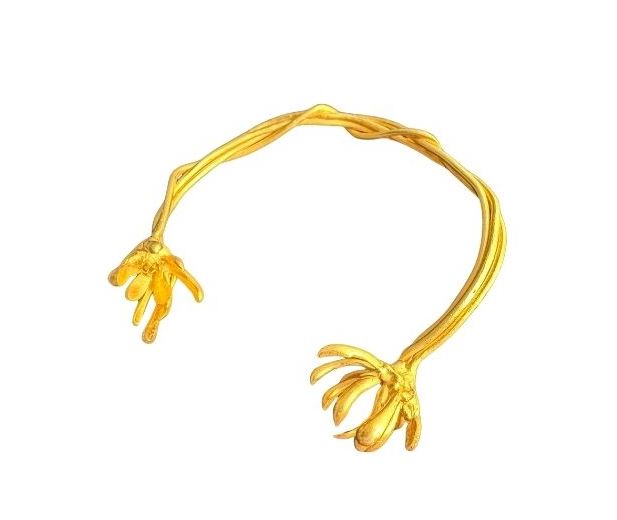 Bracelet made in bronze with two citrines, gold plated with lost wax method.