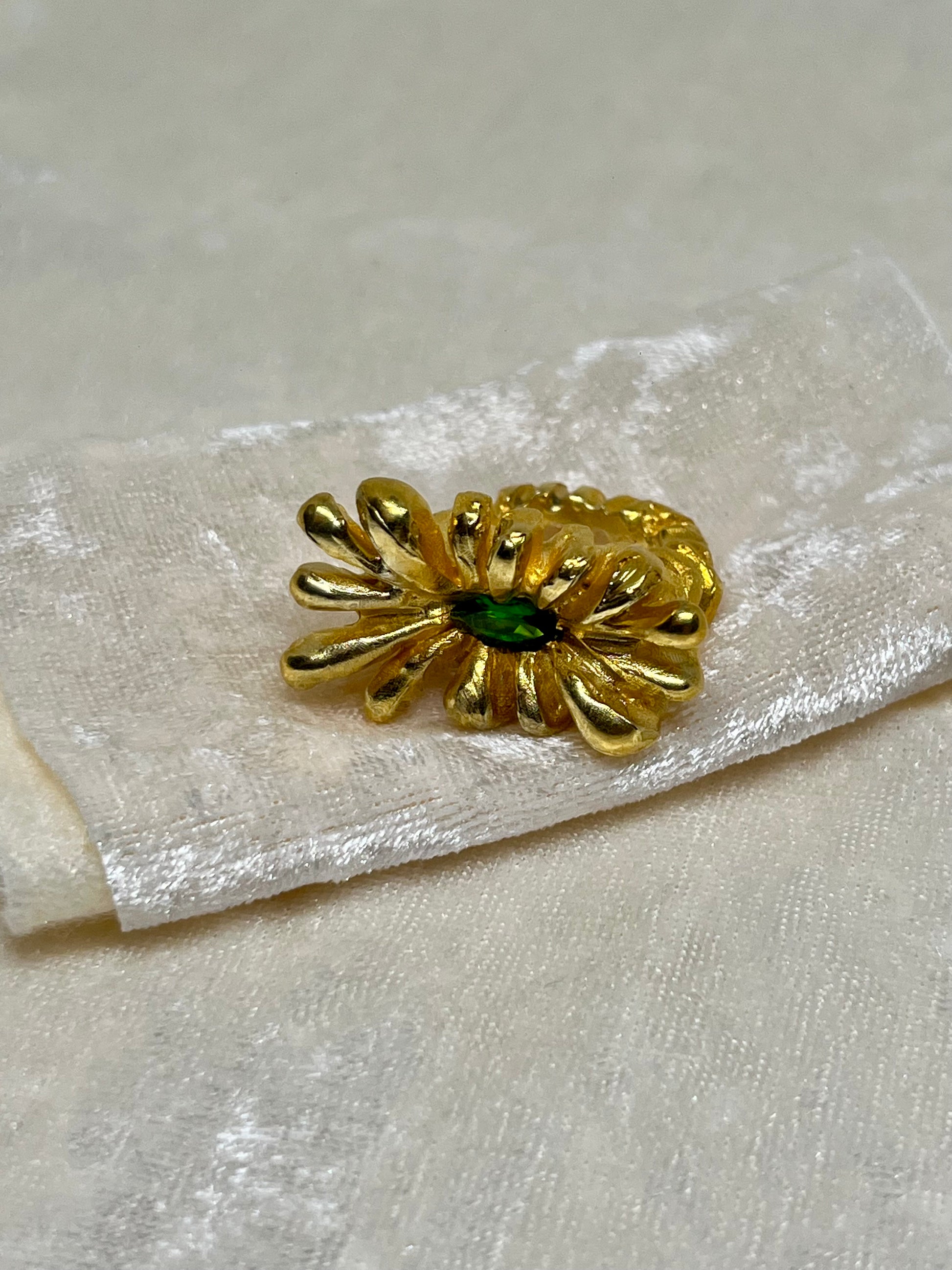 Gold plated signet ring with tsavorite, carved in wax. Size 6/46